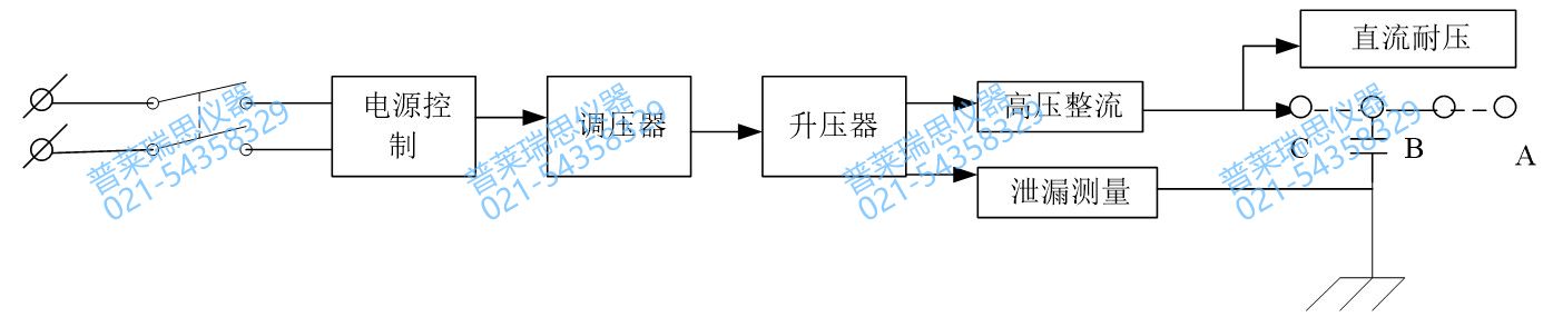 本设备主要有控制部分(低压)和高压整流,放电和测试部分组成,高压部分与外壳留有足够的安全空间。
